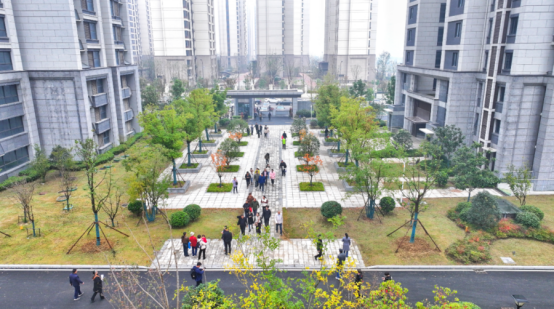 安置群眾走進(jìn)小區(qū)查看環(huán)境設(shè)施。