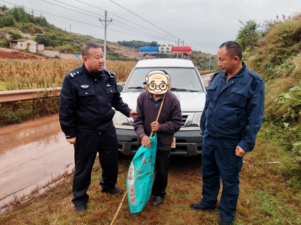 云南沾益民警尋回走失老人獲贈(zèng)錦旗