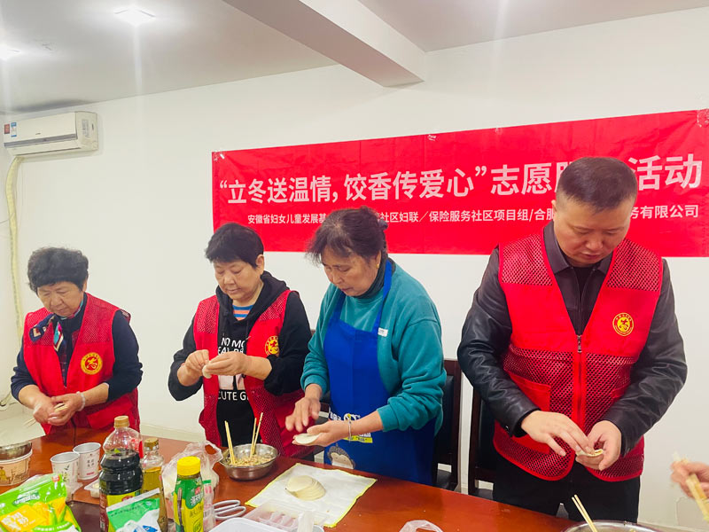 11月5日上午,立冬時(shí)節(jié),寒意初顯,但栢景灣社區(qū)黨群活動(dòng)室內(nèi)卻洋溢著融融暖意。為弘揚(yáng)尊老、敬老、愛老的中華民族傳統(tǒng)美德,讓社區(qū)老年人在冬日感受到節(jié)日關(guān)懷與溫暖,社區(qū)新時(shí)代文明實(shí)踐站、婦聯(lián)、“保險(xiǎn)服務(wù)社區(qū)”項(xiàng)目組攜手合肥福暢養(yǎng)老服務(wù)有限公司,共同舉辦了“立冬送溫情,餃香傳愛心”志愿服務(wù)活動(dòng)。黨員群眾齊聚一堂,以包餃子、送溫暖的形式,傳遞鄰里溫情,共筑和諧社區(qū)。