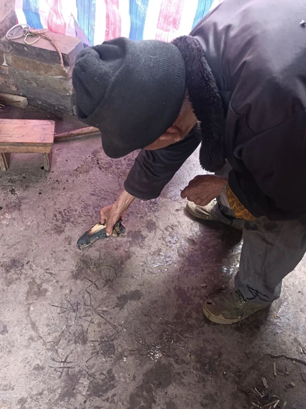 十天后,當(dāng)民警再次接到老人陪著他辦妥所有手續(xù),到銀行取到救助金并將其送至家中時,一直沉默的吳大爺,做了一件讓在場所有人動容的事。他緩緩走到火盆邊,俯身拾起一截溫?zé)岬哪咎?,在冰冷的水泥地上慢慢彎下腰,佝僂的身軀微微顫抖,指節(jié)因用力而發(fā)白,一筆一畫間,“共產(chǎn)黨好”四個大字漸漸成型。字跡歪斜,卻像刻在地上一樣有力;沒有聲音,卻比任何語言都更動人。在場民警紅了眼眶,這不是錦旗,不是感謝信,卻是最質(zhì)樸、最厚重的“民心答卷”。
