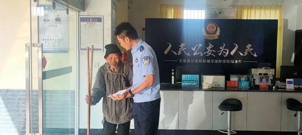 2025年10月12日清晨,88歲的聽障老人吳大爺拄著雙拐,出現(xiàn)在石屏縣公安局新城派出所門口。他灰撲撲的外套上沾著山路泥土,右腳布鞋鞋尖磨破,露出縫補的棉布;雙手反復(fù)比劃“寫字”“蓋章”的動作,渾濁的眼睛里滿是焦灼。這是他從十公里外的山村出發(fā),用4個小時一步一步“走”來的求助,沉默卻重若千鈞。