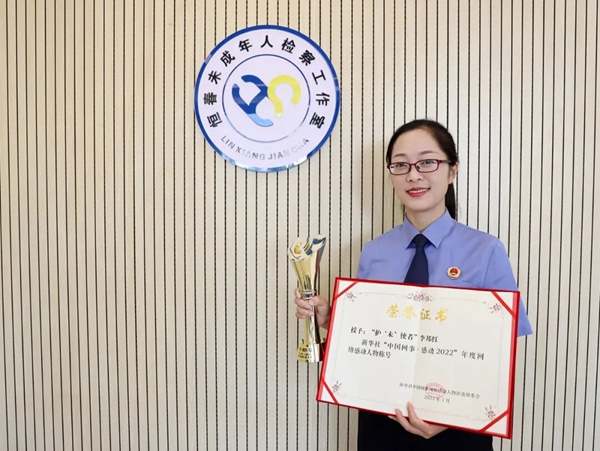 “英姿貌,巾幗情,晝夜織,守凝望,一片冰心護少年?!彼脨墼忈屪约旱穆殬I(yè),用愛點亮了自己的人生,以法律人的嚴謹細致和青年人的責任擔當,彌合一個又一個破損的心靈,挽救一個又一個走上迷途的孩子,被孩子們親切地稱為“最美檢察官阿姨”。