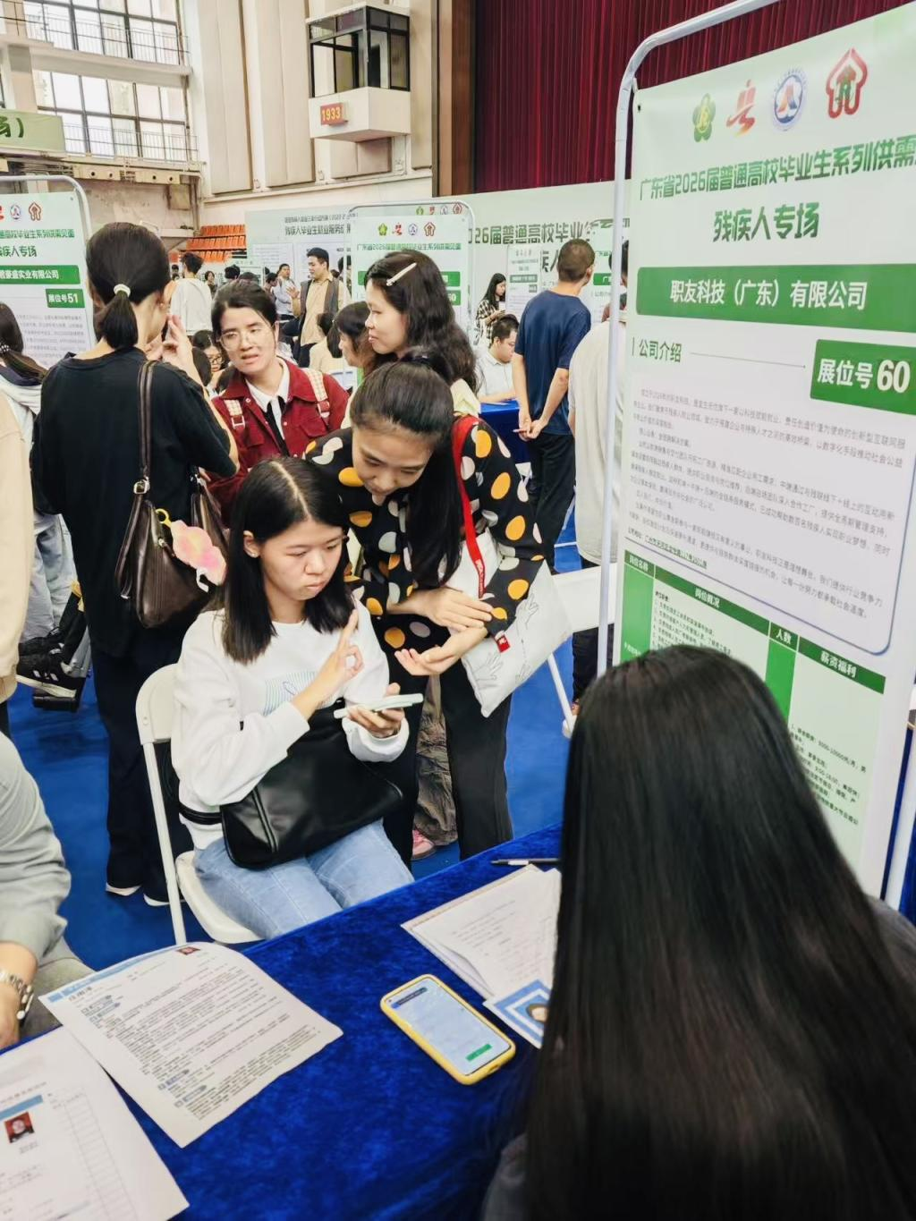 專(zhuān)場(chǎng)招聘會(huì)現(xiàn)場(chǎng)教師幫助特殊教育學(xué)生面試