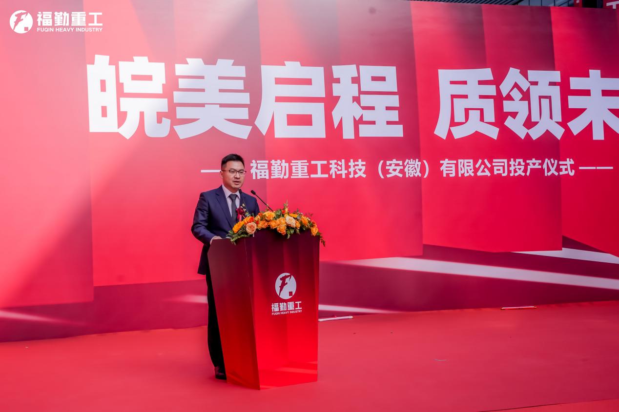 上午9時(shí)起,嘉賓在雄獅迎賓與暖場(chǎng)表演中陸續(xù)入座。儀式在氣勢(shì)恢宏的《鼓動(dòng)安徽》開場(chǎng)節(jié)目中正式拉開帷幕。福勤重工科技(安徽)有限公司總經(jīng)理卞路杰在致辭中表示:“福勤重工承載‘匠心鍛造、責(zé)任擔(dān)當(dāng)、勤勉致遠(yuǎn)、追求卓越’的核心價(jià)值觀,致力于成為中國(guó)高端裝備制造領(lǐng)域可信賴的戰(zhàn)略力量。我們不僅是投產(chǎn)一個(gè)工廠,更是開啟一條服務(wù)國(guó)家戰(zhàn)略、突破制造邊界的新賽道。”