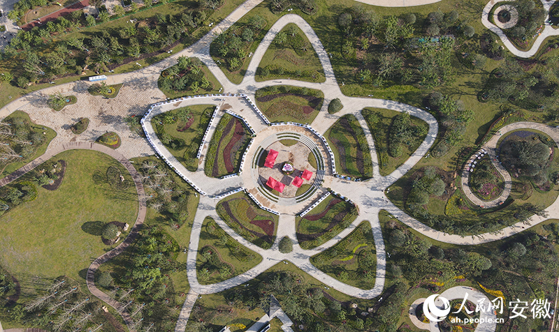 航拍阜陽花博園內(nèi)的花韻廣場。人民網(wǎng)記者王曉飛攝